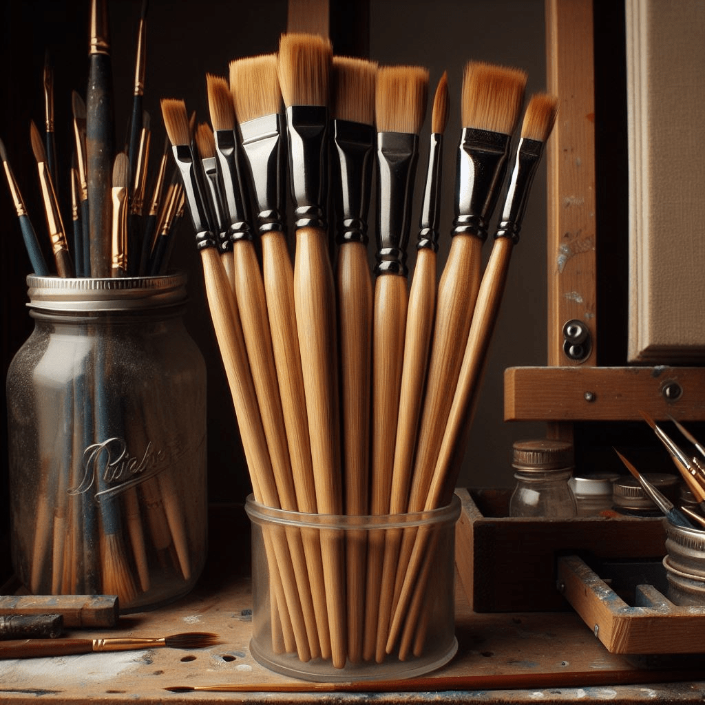 Fiona’s paintbrushes leaned at an eighty-degree angle inside the utility jar that sat on the easel shelf. The paintbrush’s heights were uniform, made of dark blond, smooth bamboo spindles. The bamboo spindles stood eight inches tall with a diameter of seven millimeters. A dark black, copper-clad ferrule circled the top of each spindle, holding the bristles in place.