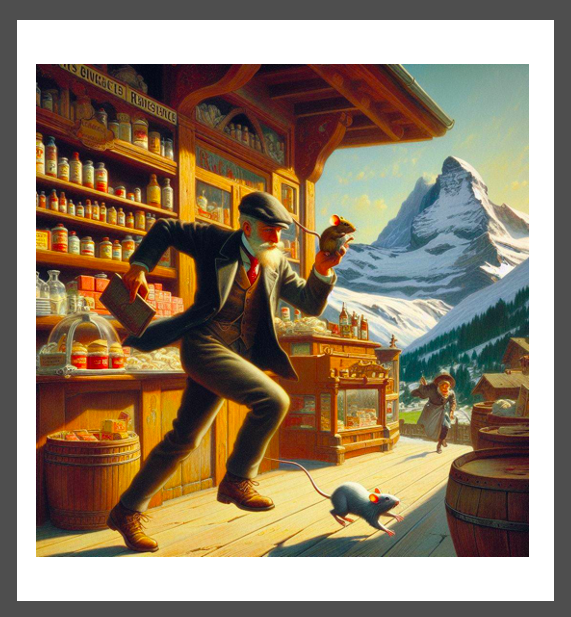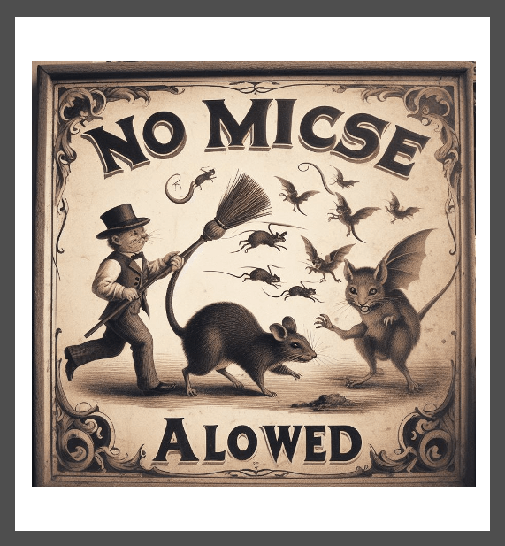 The man says “No mice allowed.”